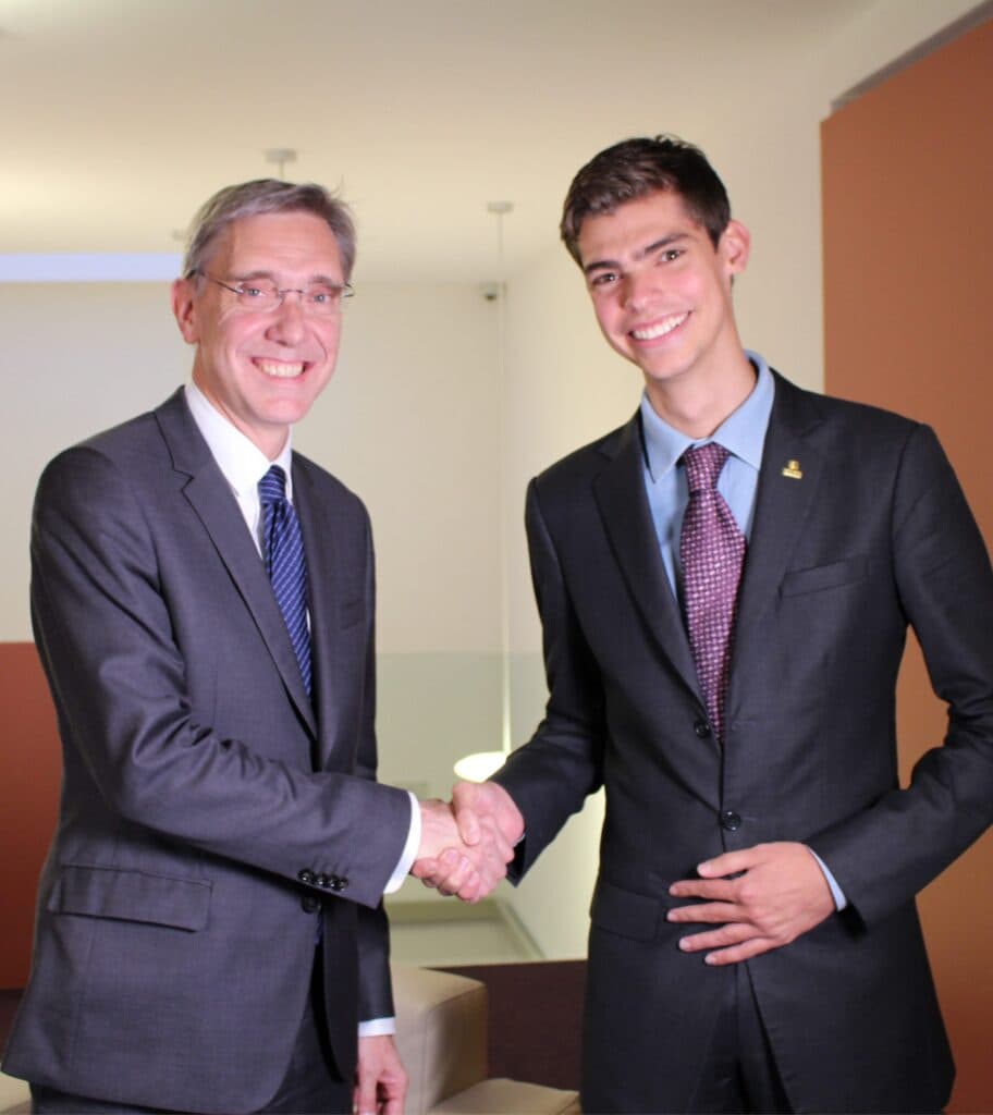 “I think there is tremendous potential for larger organizations such as ours to attract top talent, because we have significant resources and, more importantly, we offer career paths.” Steven Daines (pictured here with student Oscar Aumont)
