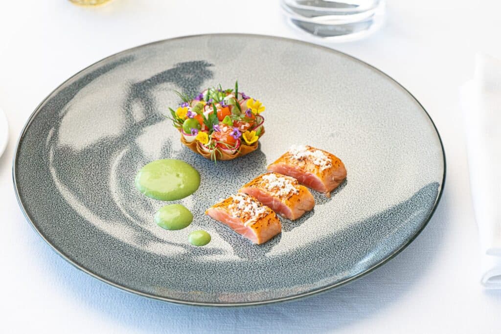 This tasty fish is the star of our latest cook-at-home recipe from Michelin star master chef Stéphane Décotterd. Char is becoming easier to find at the fishmonger, but its closer characteristics to trout make that a worthy alternative should you not be able to lay your hands on some char fillets.